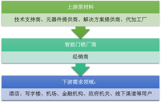 智能門鎖產業鏈包括上游的供應商、下游的渠道、安裝服務商、終端的客戶等,其中圍繞著智能門鎖廠商,連接著整個產業鏈條。目前市場渠道中仍舊以房地產工程為主,其中品牌和服務能力是未來智能門鎖廠商的關鍵。其中上游中涵蓋核心技術支持商、無線傳輸+指紋傳感器等元器件提供商、以及云平臺廠商等。下游對接經銷商,其中包括B端和C端2大市場,B端房地產工程類主要以管理為主要訴求,C端主要針對消費者,要求則非常復雜和綜合。智能門鎖廠商從產品、渠道、服務等多方面建立品牌效應,以此擴大市場份額。